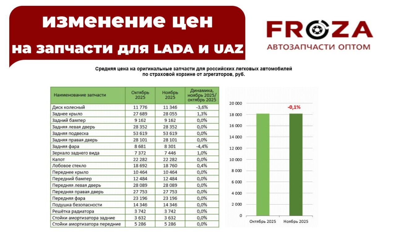 📉 По итогам периода с октября по ноябрь 2025 года средняя стоимость оригинальных деталей практически не изменилась — зафиксировано небольшое снижение на 0,1%.