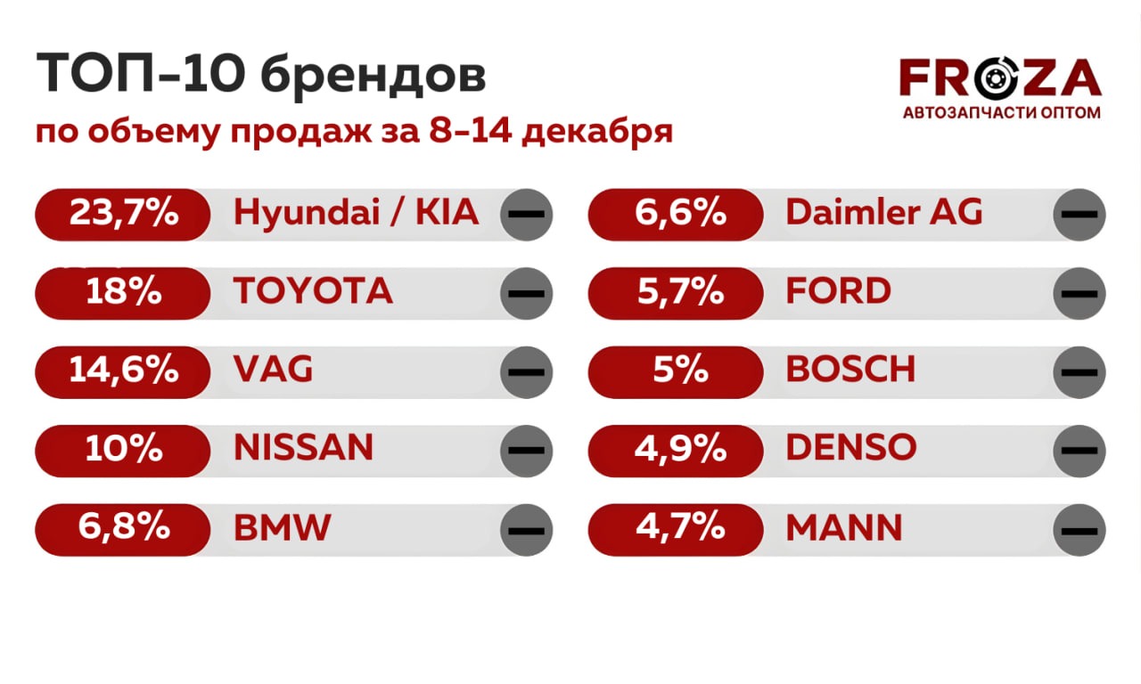 ТОП-10 брендов за неделю — доля в общих продажах