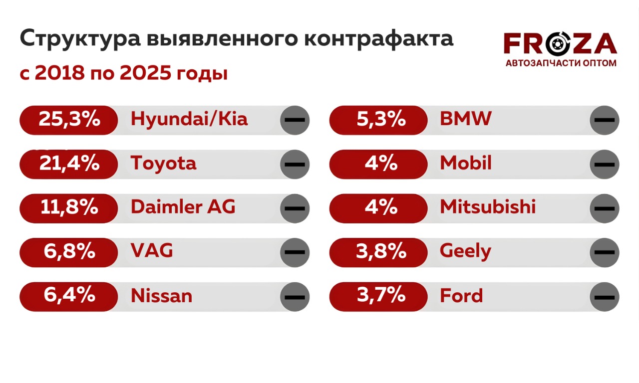 🔎 Делимся нашей статистикой по контрафактным деталям, которые мы выявили в ходе работы.
